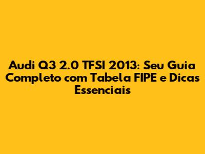Fala, galera! Se você está de olho no Audi Q3 2.0 TFSI de 2013, ou já tem um e quer saber tudo sobre ele, chegou ao lugar certo! Neste artigo, vamos mergulhar fundo no universo desse SUV premium, desvendando a famosa Tabela FIPE, dando dicas valiosas e te ajudando a fazer a melhor escolha. Preparado(a) para essa jornada? Então, bora lá!