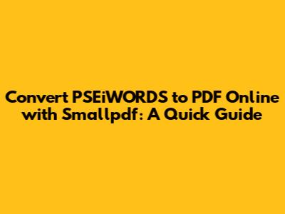 Convert PSEiWORDS To PDF Online With Smallpdf: A Quick Guide