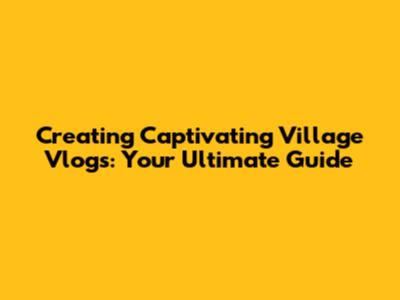 Creating Captivating Village Vlogs: Your Ultimate Guide