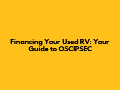 So, you're dreaming of hitting the open road in a used RV, huh? That's awesome! But let's be real, figuring out the financing part can feel like navigating a maze. One term you might stumble upon in your research is OSCIPSEC, and it can sound pretty intimidating. But don't worry, guys, we're going to break it down in simple terms so you can understand how it might (or might not) play a role in financing your used RV.