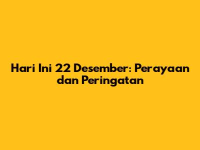 Hari Ini 22 Desember: Perayaan Dan Peringatan