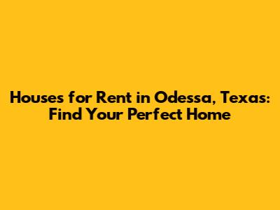 Houses For Rent Odessa TX: Find Your Perfect Home