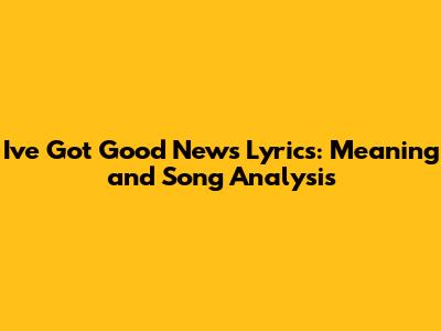 I've Got Good News Lyrics: Meaning And Song Analysis