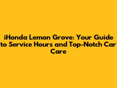 Hey there, car lovers! If you're cruising around Lemon Grove, California, and your Honda needs some TLC, you're probably wondering about iHonda Lemon Grove's service hours. Finding a reliable auto shop that fits your schedule can be a real headache, right? Well, fret no more! This guide is your one-stop shop for everything related to iHonda Lemon Grove's service hours, plus a peek into the fantastic services they offer. Whether it's a routine check-up, a quick oil change, or more complex repairs, knowing their hours is crucial. Let's dive in and get you the info you need to keep your Honda running smoothly! We will cover everything from their typical operating hours, special holiday schedules, and how to book your appointment. Get ready to have all your burning questions answered and discover why iHonda Lemon Grove is the go-to place for Honda owners in the area. Get ready, guys, because we are getting ready to unearth the secret hours and services they offer!