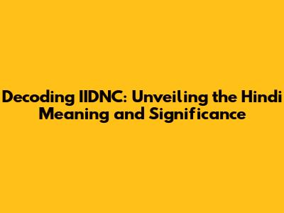 IIDNC: Decoding The Hindi Meaning & Significance