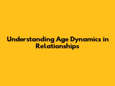 Understanding Age Dynamics In Relationships