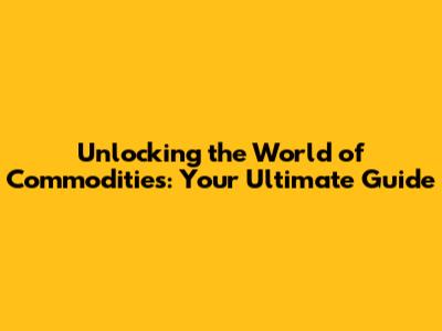 Unlocking The World Of Commodities: Your Ultimate Guide
