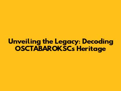 Unveiling The Legacy: Decoding OSCTABAROKSC's Heritage