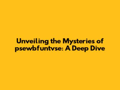 Unveiling The Mysteries Of Psewbfuntvse: A Deep Dive