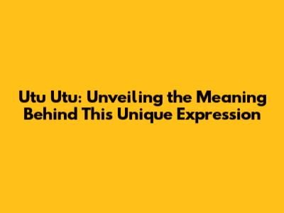 Utu Utu: Unveiling The Meaning Behind This Unique Expression